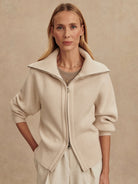 Enrico Zip-Through Knit Jacket in Silver Birch