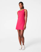 Convenience and performance were key considerations in the creation of the SPANXshapeTM Get Moving High Neck Dress, which is composed of breathable, sweat-wicking fabric with 4-way stretch. In addition to having secret side pockets to keep your necessities and built-in SPANXshapeTM Booty Boost® shorts for targeted compression of the core, hip, and thigh, this adaptable sportswear style also boasts our patent-pending Take Off Technology, which makes toilet breaks simple and hassle-free. This A-line dress is intended to move thanks to important touches like adjustable straps and a chic cutout at the back.