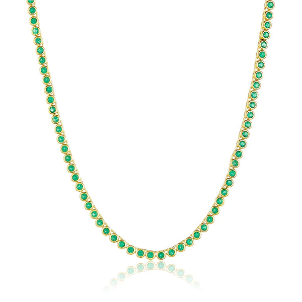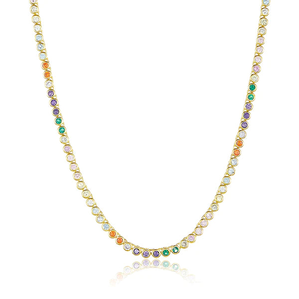 Perfect for layering, our Baroness Necklace in Baby Size creates a delicate and feminine look. The 18-inch length includes 2mm CZ stones that sparkle from every angle. This piece is available in brass, gold-plated brass or silver plated brass.