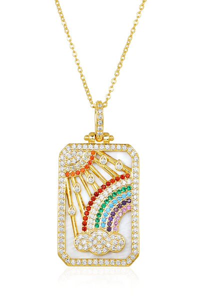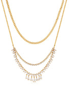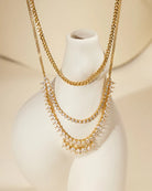 This eye-catching necklace is pre-layered with a plain curb chain and a round + pear bezel-set pavè chain, boasting a total of 151 round and pear shaped CZ stones. Available in silver or gold, the solid brass construction is durable and lightweight for everyday wear.