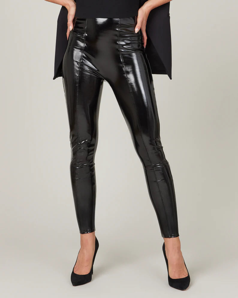 A sartorial cult favorite since its launch, this style features high-shine, smoothing faux patent leather fabric and a hidden contoured waistband. This style was designed with a unique finish that gives them their rich color and shine.
