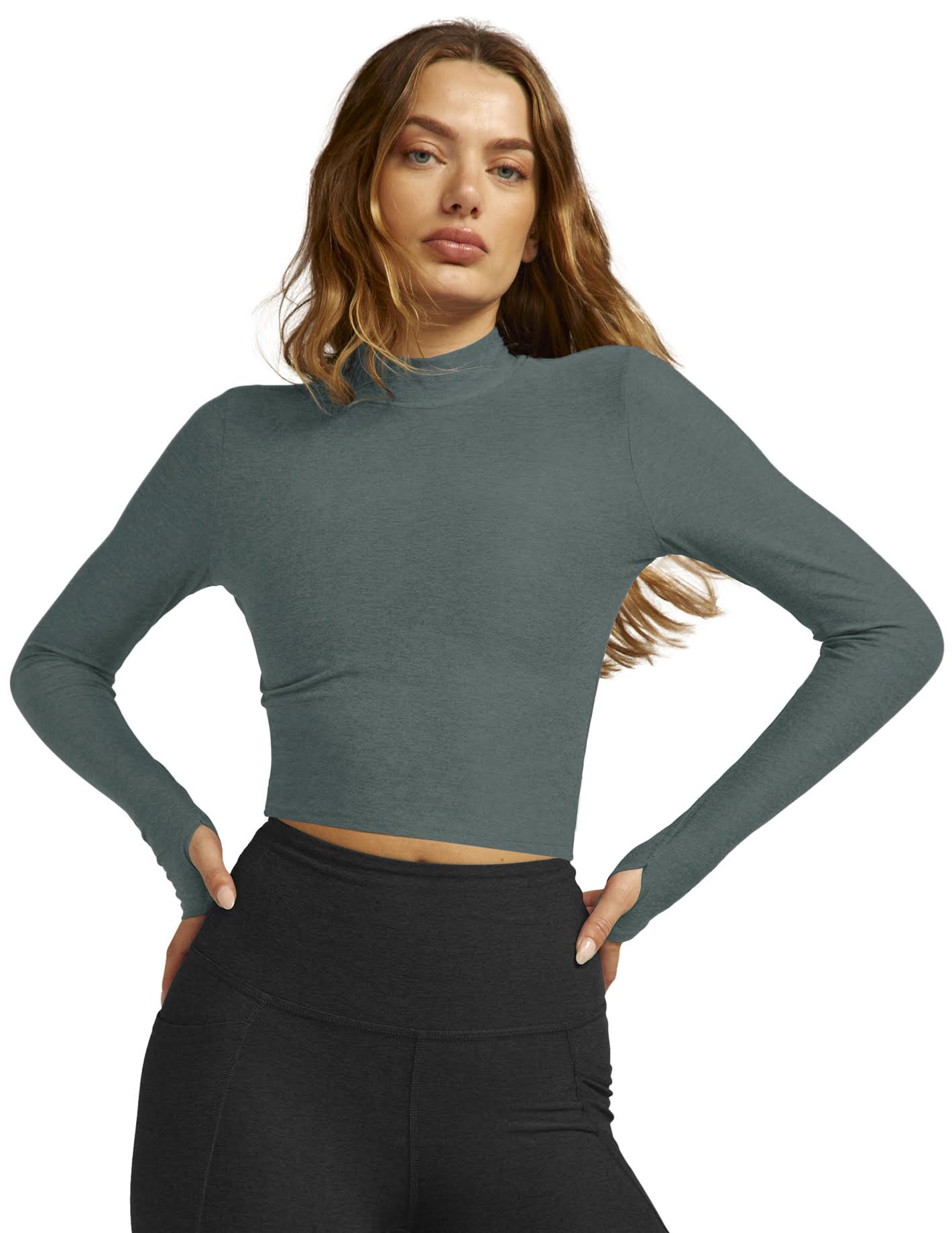 The versatile design of this cropped pullover will not go out of style. Its mock neck makes it a soft under layer for sweaters or on its own for a cute cropped look.