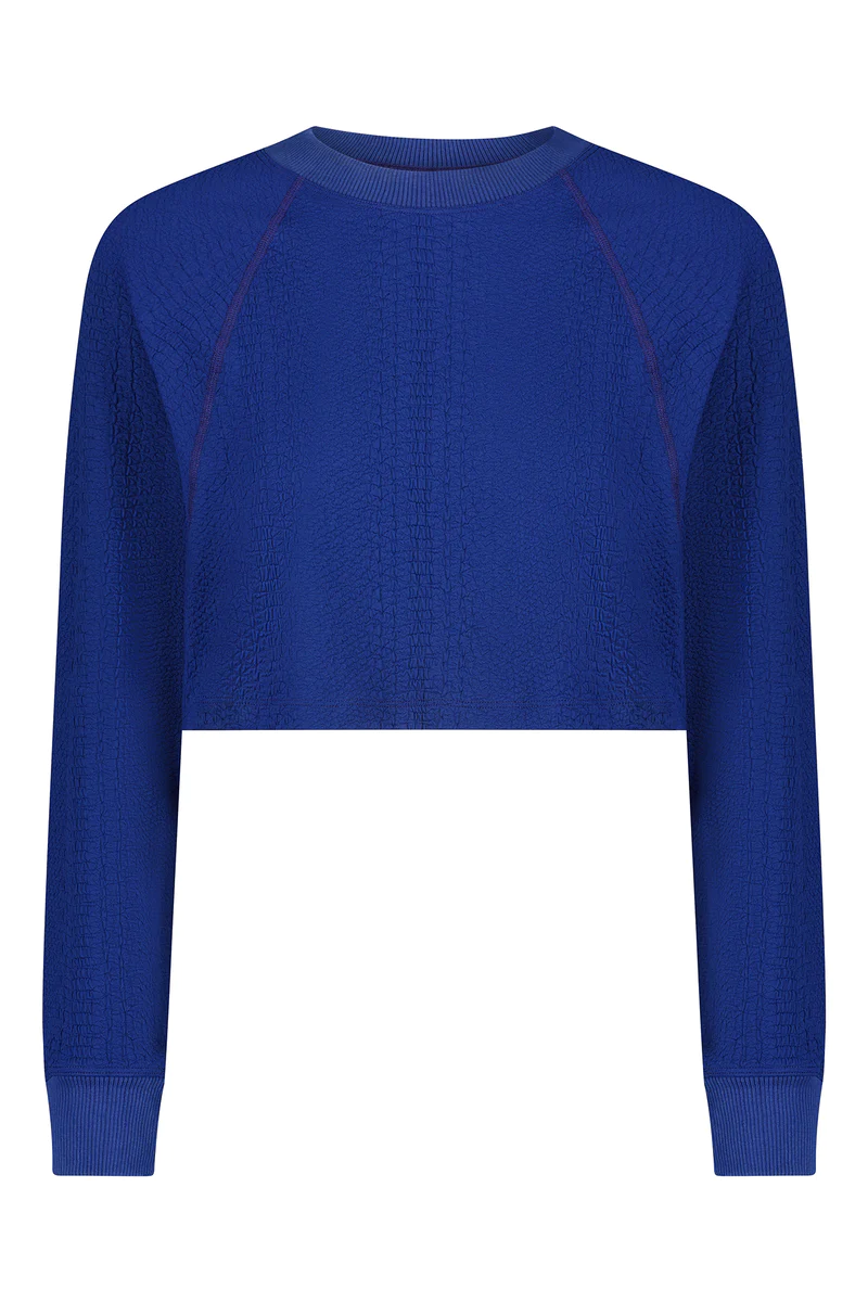 Made from luxuriously soft textured faux snake material, the Isabella Pullover showcases a ribbed crew neck, cuffs, and drop shoulder design. It serves as an excellent option to effortlessly throw on after your workout or for a refreshing morning stroll on chilly days.