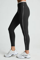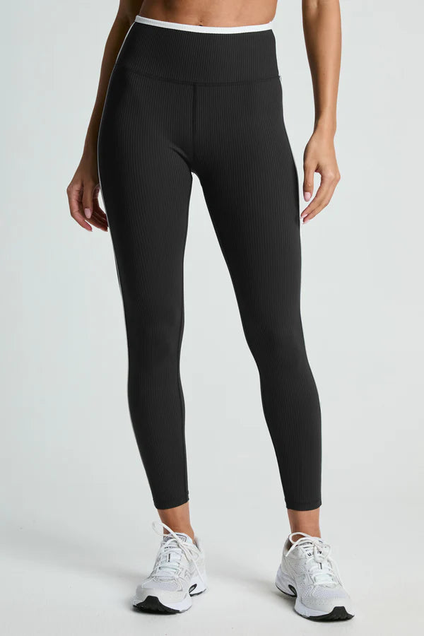 Designed with a high waist and distinctive contrast accents at the waist and along the leg, the Ribbed Track Legging offers a playful sporty vibe. Providing support without constriction, these leggings can be effortlessly matched with any of Year of Ours' Active Ribbed bras. For a striking coordinated ensemble, consider pairing them with the Ribbed Two Tone Bralette.