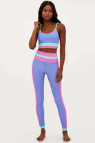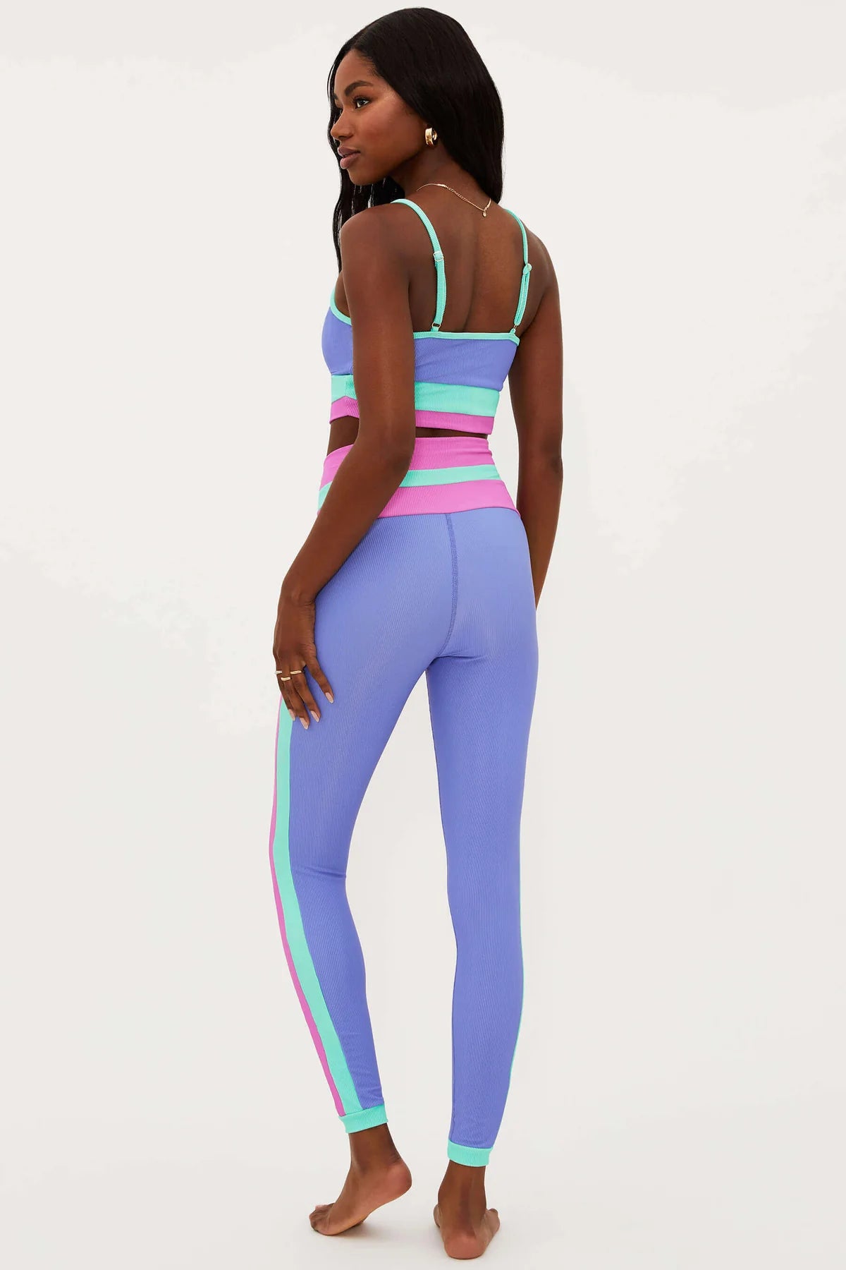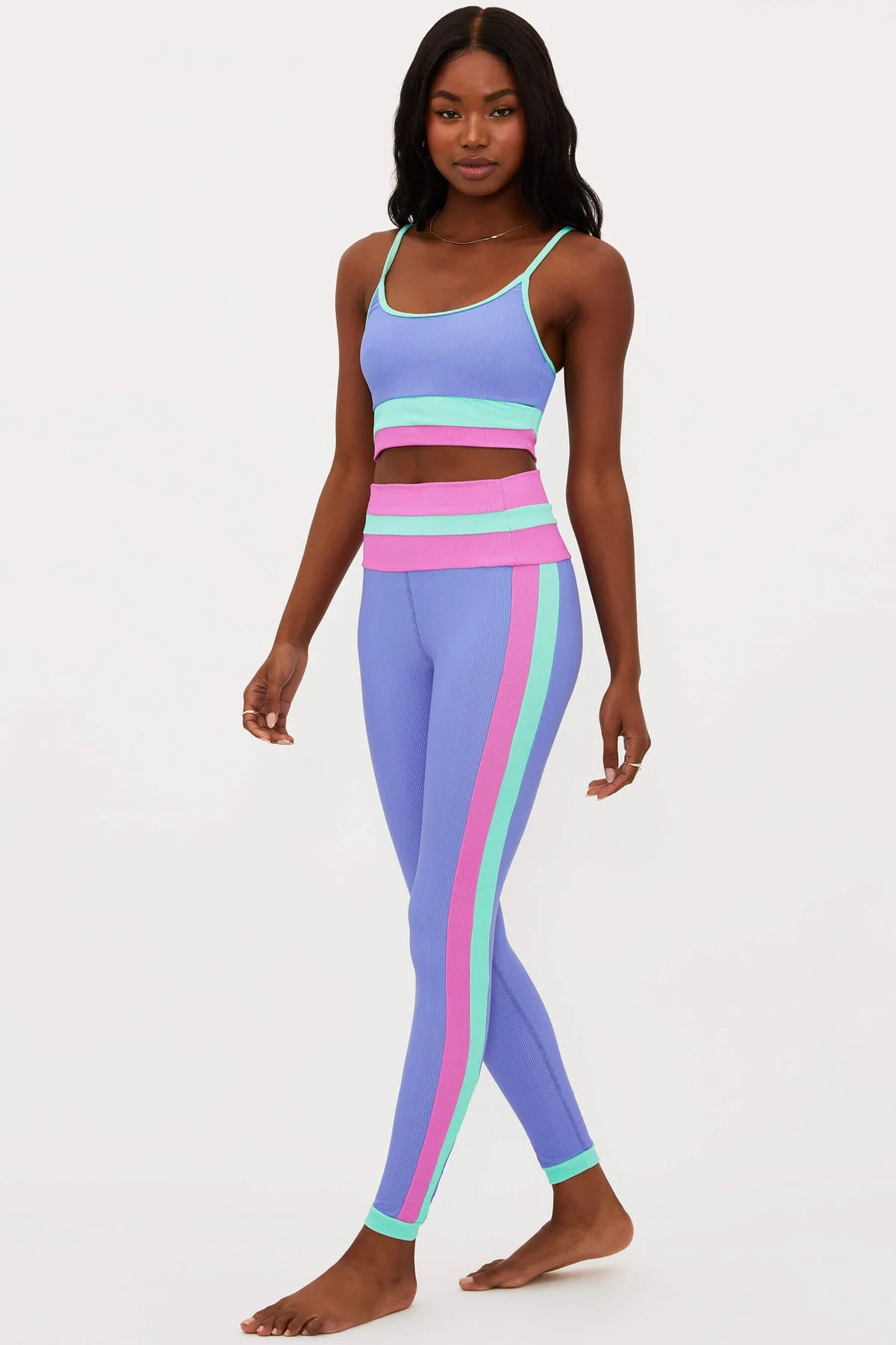 Introducing the Melinda Legging, a pair of ultrasoft, ribbed leggings that showcase color-blocked panels at the high waist and sides. These leggings add a playful touch to your workout attire.
