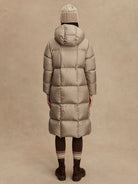 crafted from Varley's Pearlized Crinkle Nylon fabric in a large square quilt with subtle sheen. It's cut to a clean, elevated silhouette with a curved seamline, adjusters on the hood, and branded grosgrain pullers. The premium down fill has a new, higher fill power, which feels lofty and warm without being heavy or too bulky.