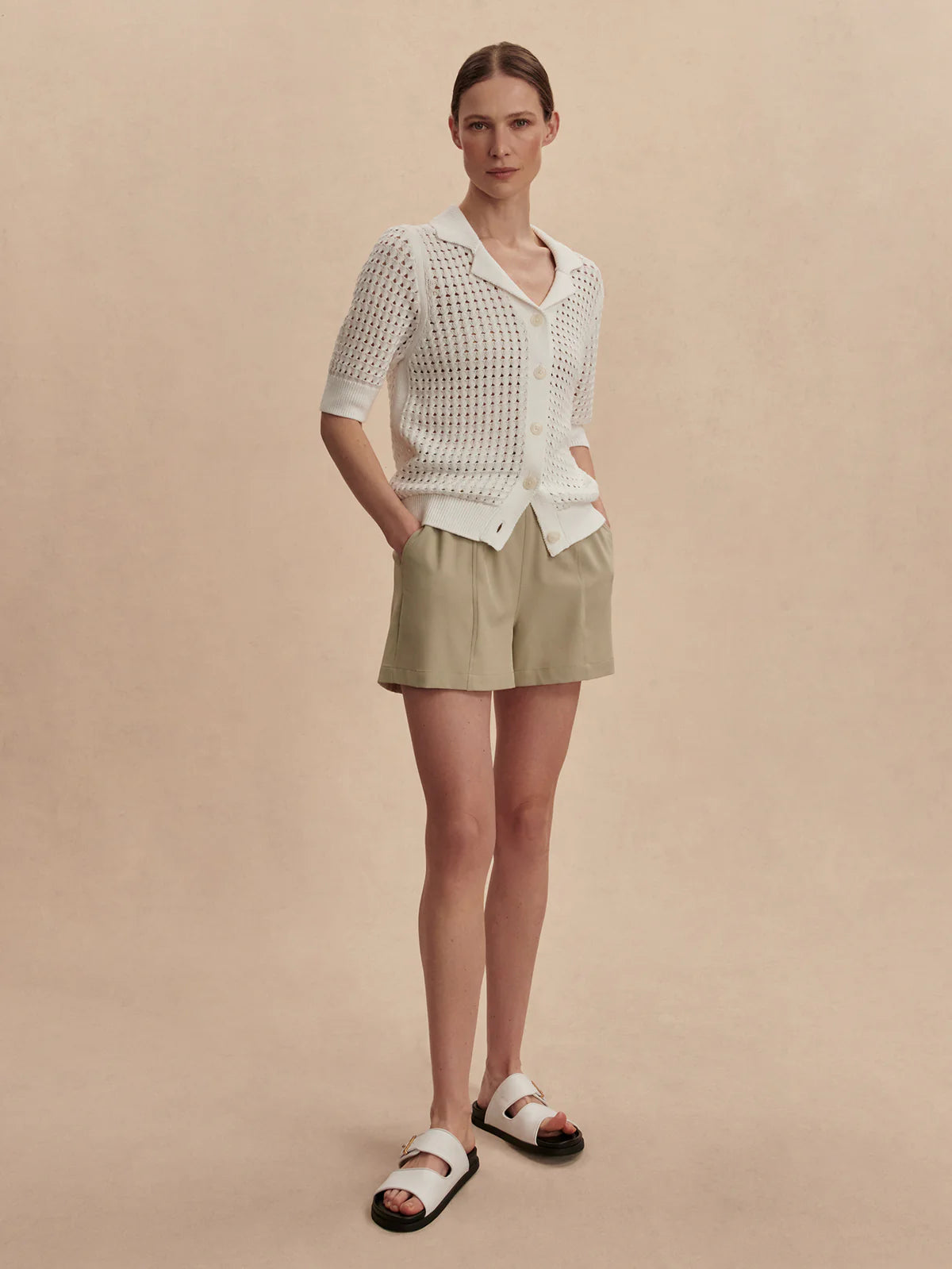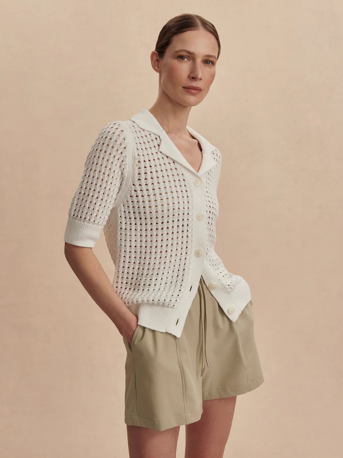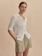 The Ellie knit shirt is a button-up essential featuring a revere collar for a touch of sophistication. Made from 100% cotton with a fine cable stitch, it offers all-day comfort and effortless elegance.