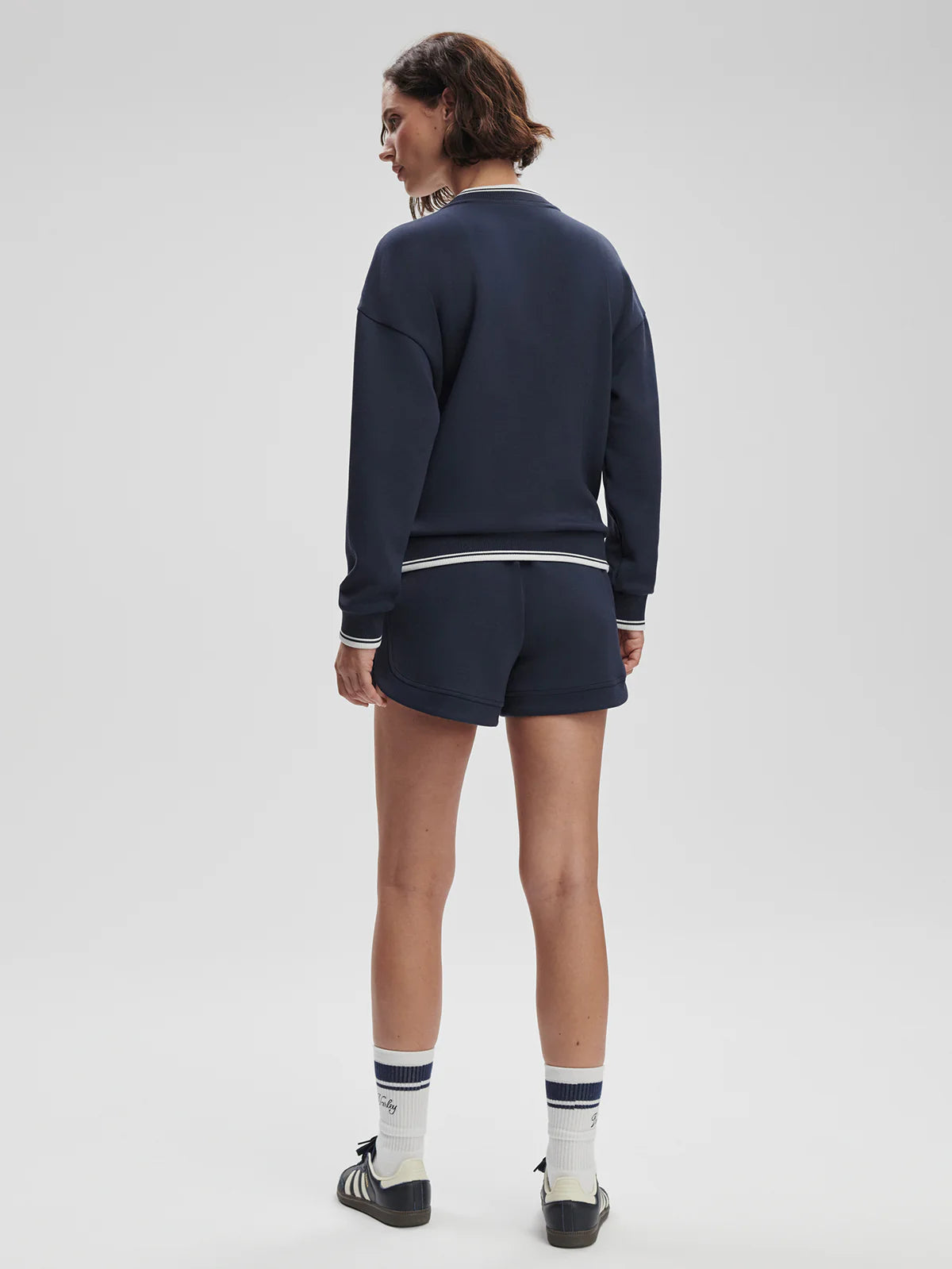 Made from the signature Doublesoft fabric, this classic sweater is the perfect blend of elegance and everyday wear. Relaxed fit is perfect for the on the go light cover up. Rib neck trim and cuffed sleeves and the laid-on patch elevate the look.