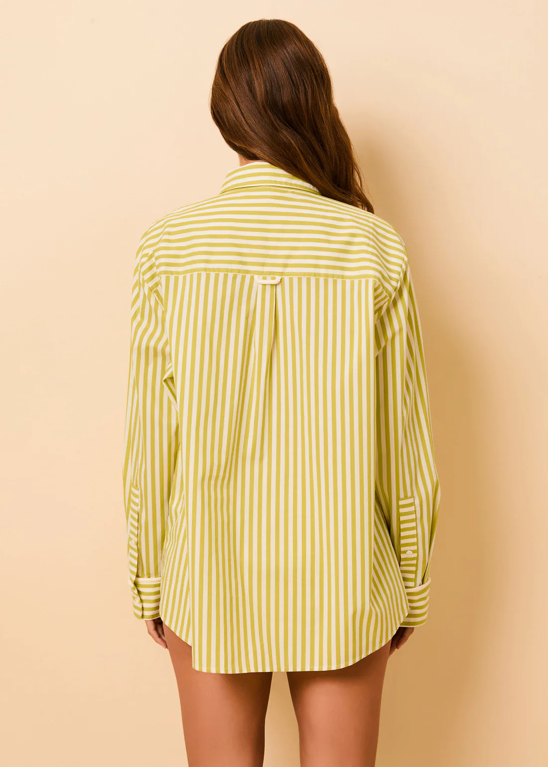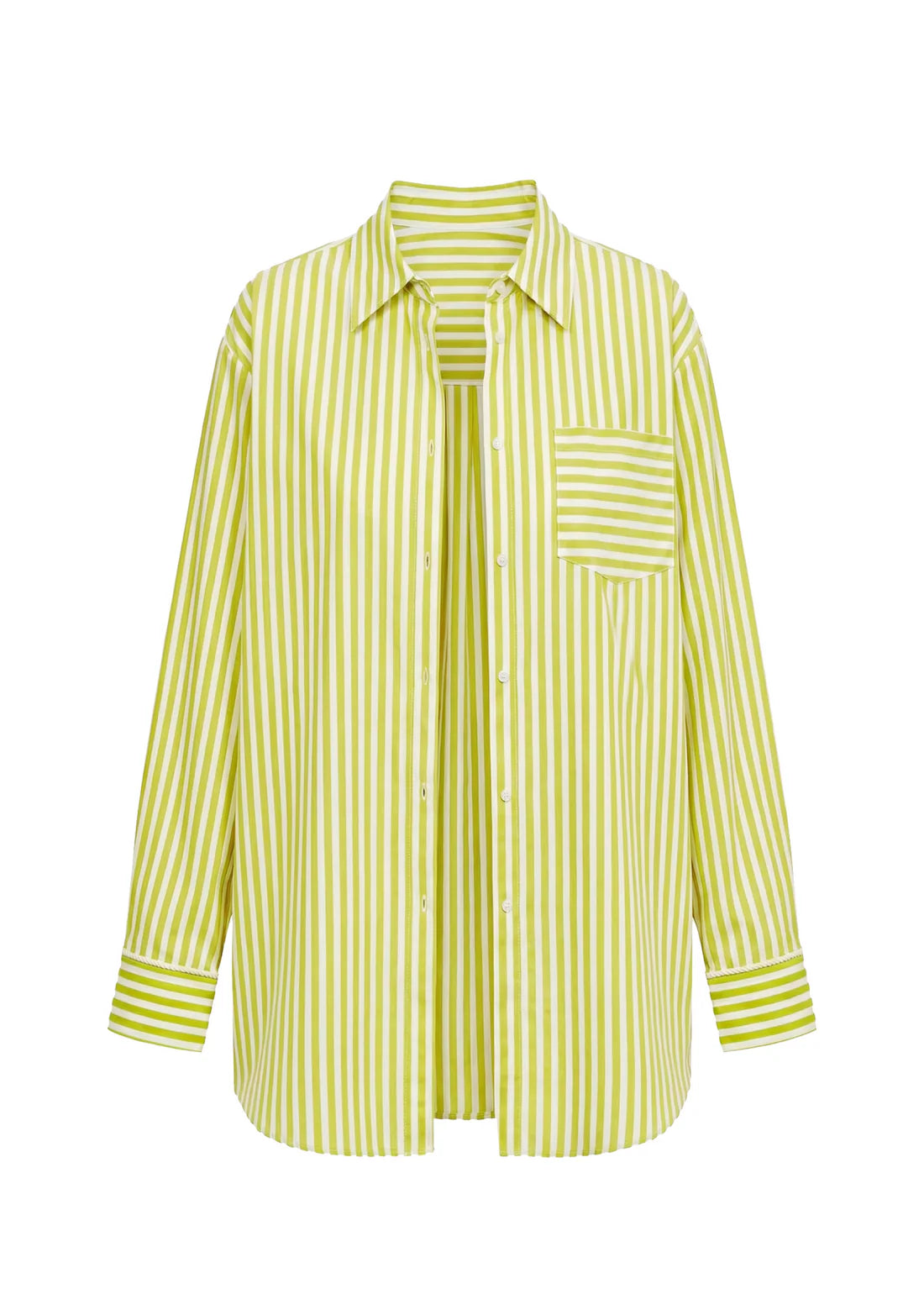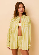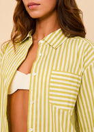 The Avril Button Down is a classic button-down shirt, featuring a relaxed fit, a single chest pocket, and mother-of-pearl buttons. Made in a crisp cotton poplin, the shirt features a yarn dye stripe and is finished with a washed effect for effortless, lived-in charm.