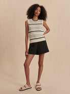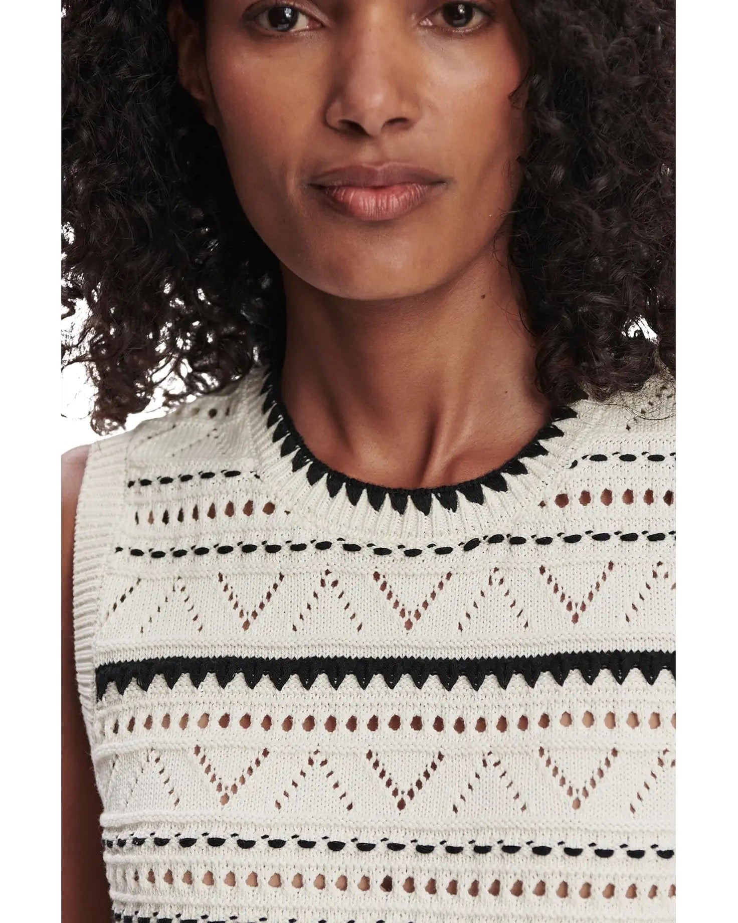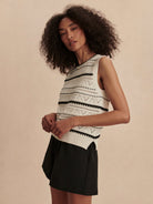 Inspired by the shape of the Delaney, the Athena is an elevated knit vest crafted from 100% cotton. A contrast stitch running through the body and on the neck trim adds an extra layer of intricacy.