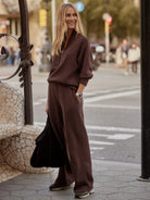 Experience unmatched comfort and style in these DoubleSoft® pants. Featuring a high-rise waist, wide-leg silhouette, elasticated waist with internal drawcord, and elegant pink tuck detailing, they're a versatile wardrobe essential.