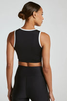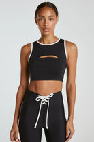 This style of high-neck bra, which has a cutaway feature and contrast trim, completes your sport-cool look while providing enough of support for intense exercises.