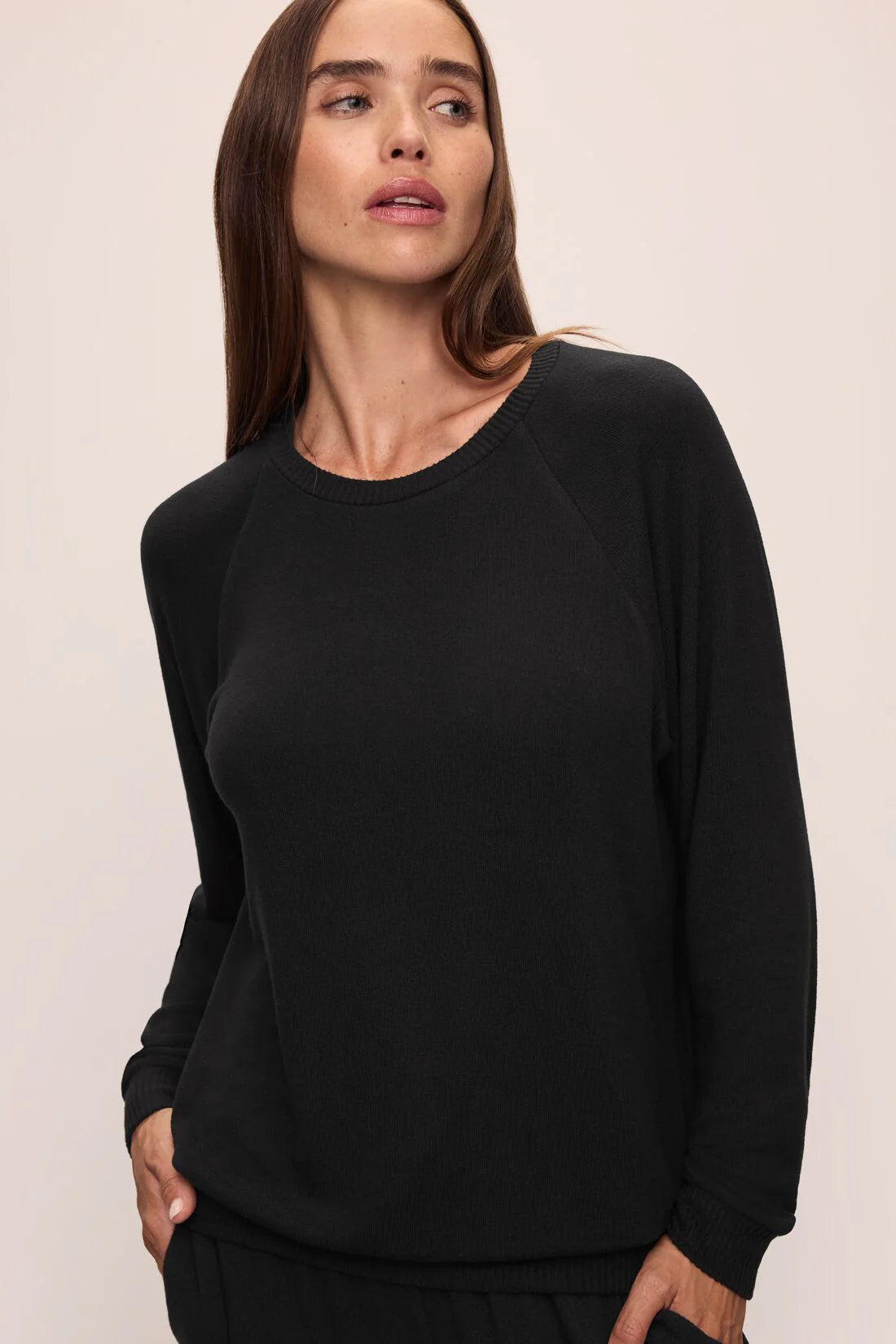 Made from 96% TENCEL MODAL and 4% ELASTANE, this open crew neck pullover features an inserted rib neckband, cinched rib sleeve cuff and bottom band with added blouson, and raglan sleeves. It offers a relaxed, comfortable fit. For care, it is recommended to machine wash cold with like colors on a gentle cycle, tumble dry low, and warm iron if needed. Be sure to turn the pullover inside out before washing.