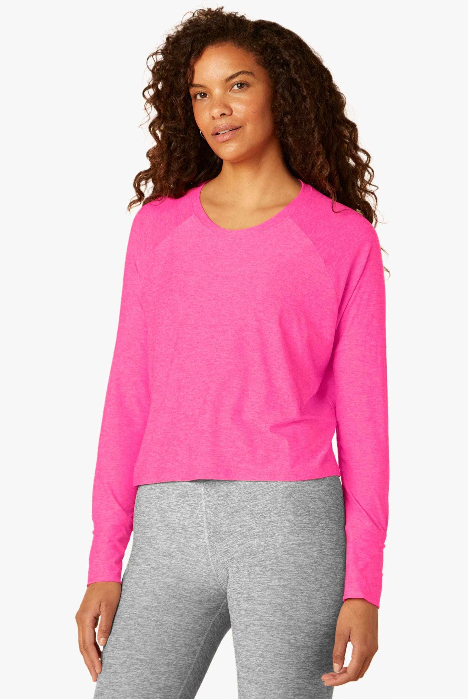 Our collection of tops, crafted from luxurious, tactile fabrics with thoughtful design, is made to suit any day. Discover timeless pieces for all seasons, from refined knitwear to casual t-shirts, relaxed sweatshirts, and fitted tanks. Pair with our soft, breathable leggings for busy days or tapered pants for everyday comfort.