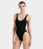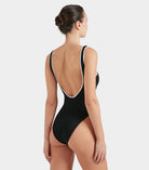 Let's engage in physical contact. With Faye's scooped back style, dipped collar, and sporty contrast detailing, the 1980s are making a comeback.