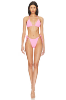The iconic Hunza G triangle bikini, featuring a sporty contrast trim, is back.  With its adjustable neck and side ties, this adaptable classic allows you to customize its look.  Your go-to bikini now.Picture from Revolve