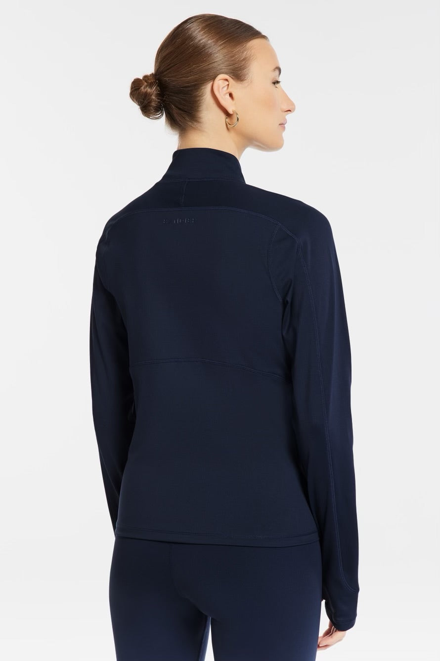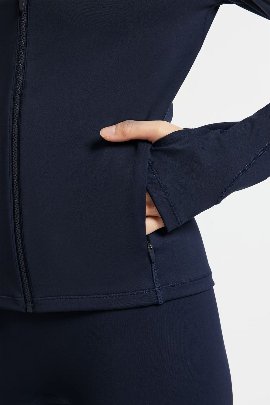 Una chaqueta de alto rendimiento con cremallera completa de Bandier que es tan elegante como técnica.