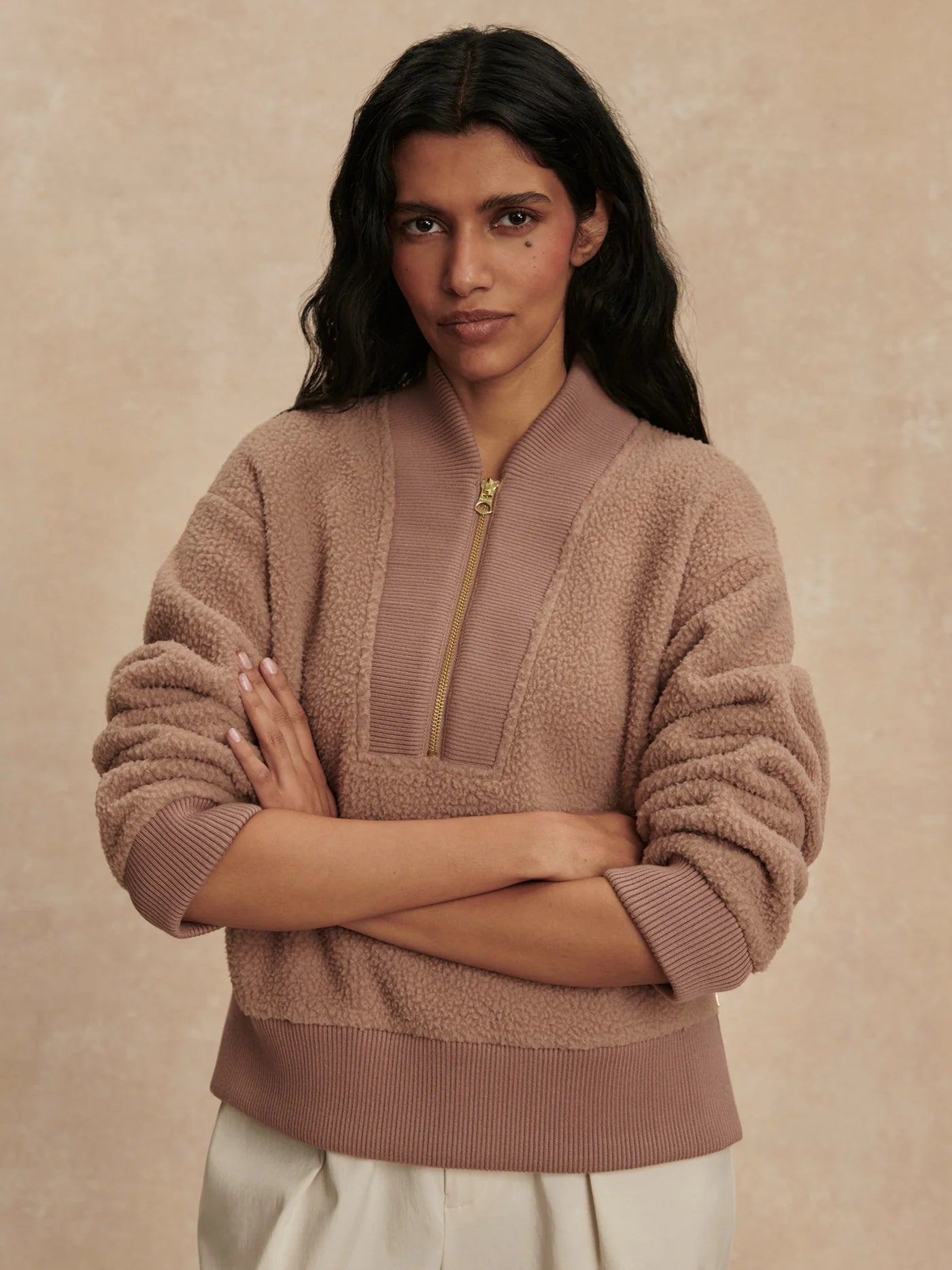 Inspire your seasonal wardrobe with this elevated take on a half-zip fleece. Made from Varley's soft and insulating Plush Borg Fleece, the Mumford is accentuated with a ribbed hem, cuffs, and a panel along the front zip. Cut to a relaxed fit with loose sleeves and a contemporary neckline, it delivers all-day comfort with style.