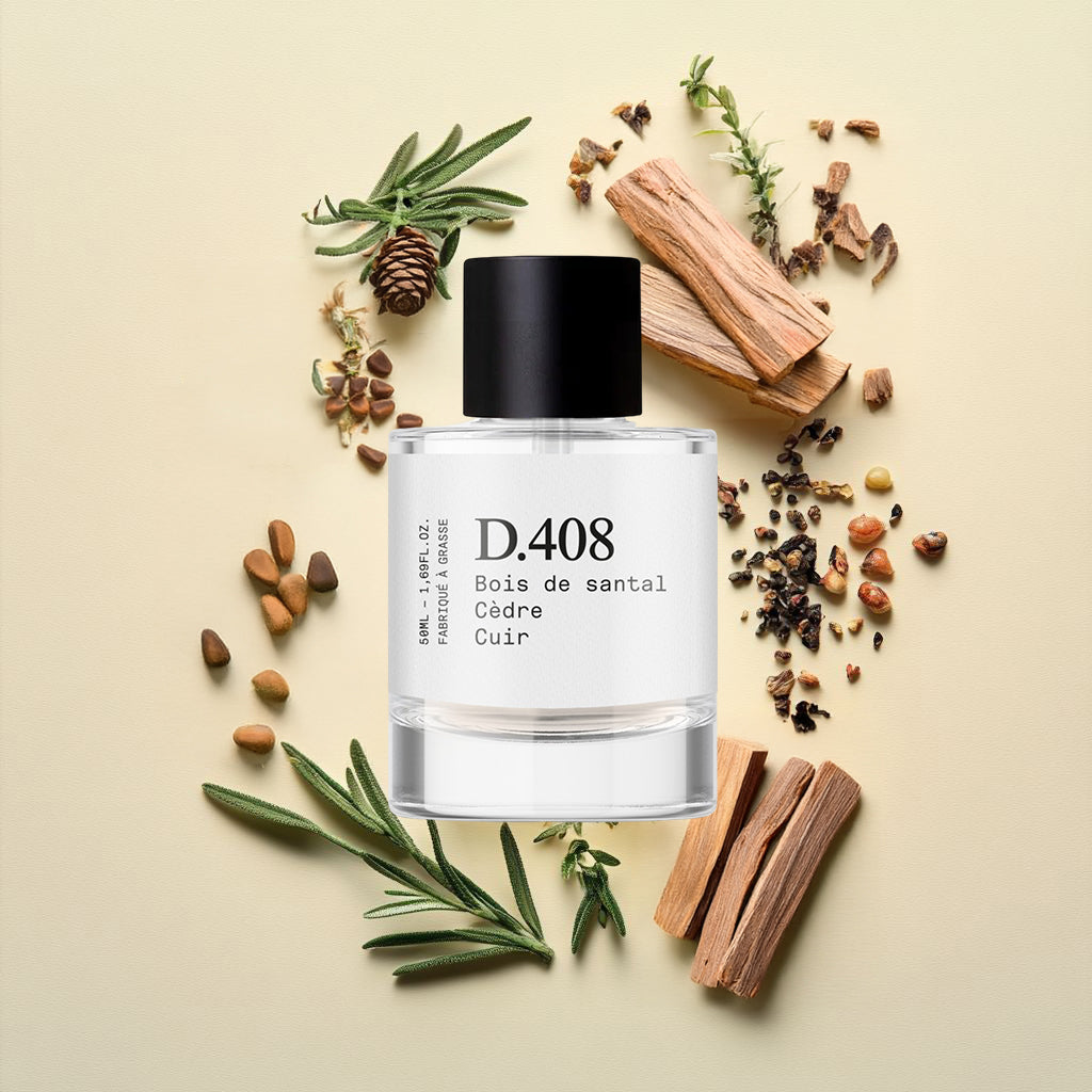 D.408, inspired by Le Labo’s Santal 33, captures the smoky warmth of Sandalwood blended with the rugged richness of Leather and the woody depth of Cedar. This evocative combination creates a bold, unisex scent that embodies individuality and timeless elegance. Crafted meticulously in Grasse, our fragrance reflects the finest traditions of artisanal French perfumery. We chose Santal 33 as inspiration for its iconic status, admired for its distinctive and unforgettable blend of earthy and leathery notes that resonate with sophistication and character.