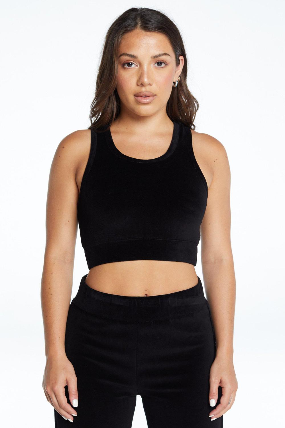 Un imprescindible y acogedor en tu armario, el top corto de terciopelo es un básico acogedor que puedes usar temporada tras temporada. Este sujetador tiene un cuello redondo alto, una banda inferior elástica de 2" y está confeccionado con nuestra acogedora tela de terciopelo suave y tersa.