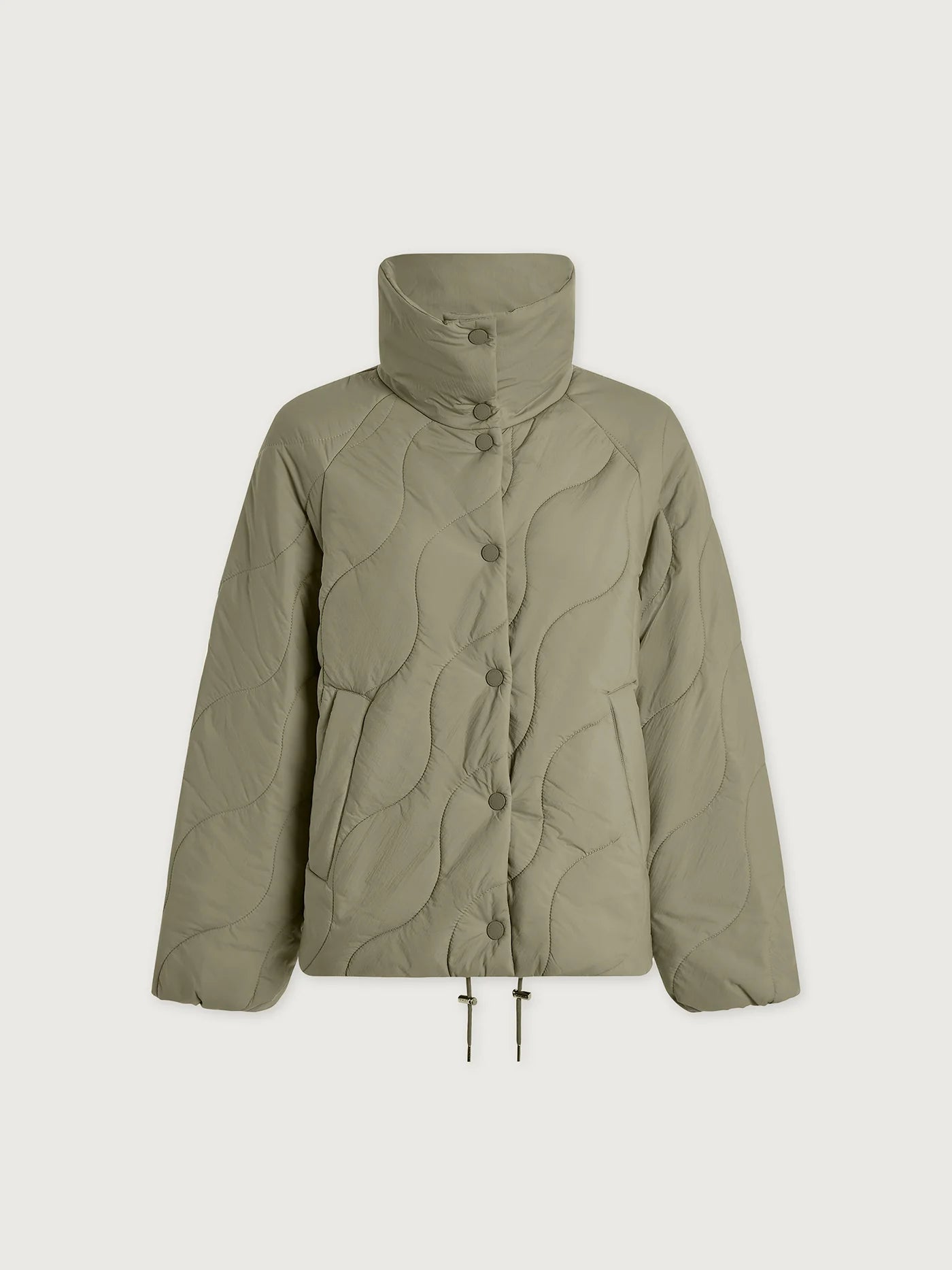 The Fabia delivers lightweight warmth in a relaxed, boxy shape - perfect for effortless layering over chunky knits. It's crafted from Superlight Soft Nylon in an elegantly angled onion quilt and features a high collar, curved hem with internal cinch, and easy snap-through fastening.