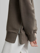 La sudadera Milton es una prenda elegante y moderna imprescindible en cualquier armario. Tiene elementos de diseño únicos, como mangas con fuelle, detalles de cremallera lateral, hombros caídos y puños profundos que añaden hermosos toques al aspecto general.