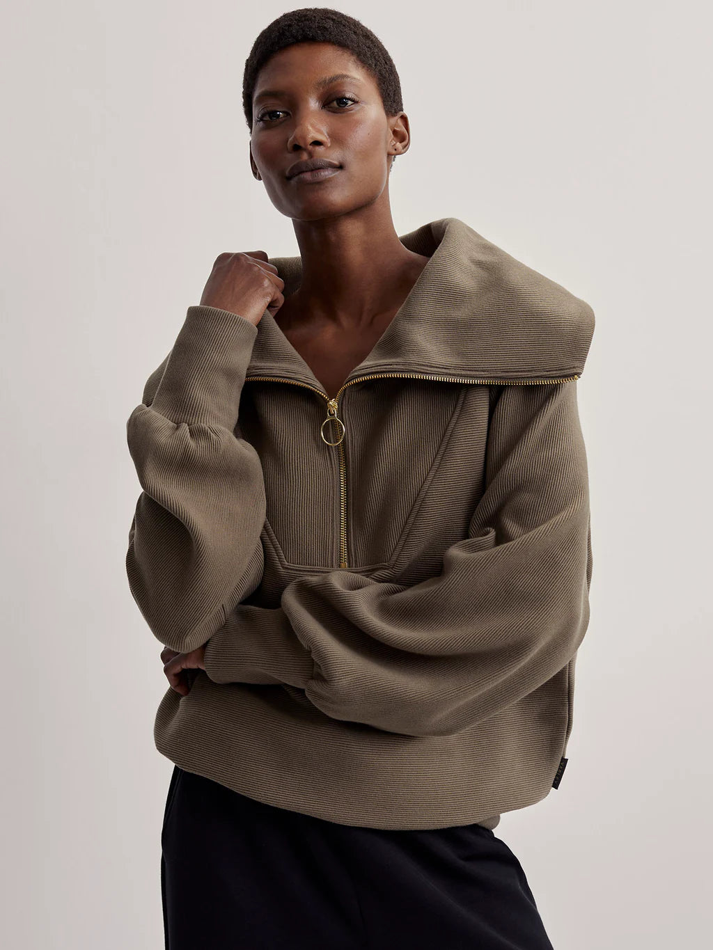 Un clásico de Varley, el versátil Vine es la combinación perfecta de practicidad, sofisticación y estilo. Confeccionado en nuestro característico canalé otomano, su moderno detalle de media cremallera lo convierte en el mejor compañero de viaje.