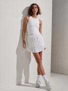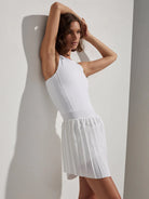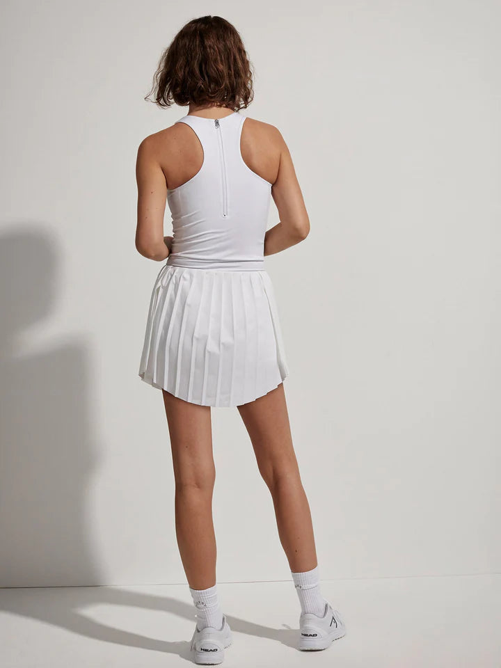 Líneas clásicas, estética moderna y máxima comodidad se unen en este versátil vestido activo. Confeccionado en nuestro tejido Heavy Stretch Woven con una textura de sarga suave y fresca, es la combinación perfecta de estilo atemporal y diseño considerado. Con un frente completamente forrado, sin copas y pantalones cortos internos con bolsillos laterales, sus detalles prácticos te permiten pasar sin esfuerzo de la cancha a la casa club.
