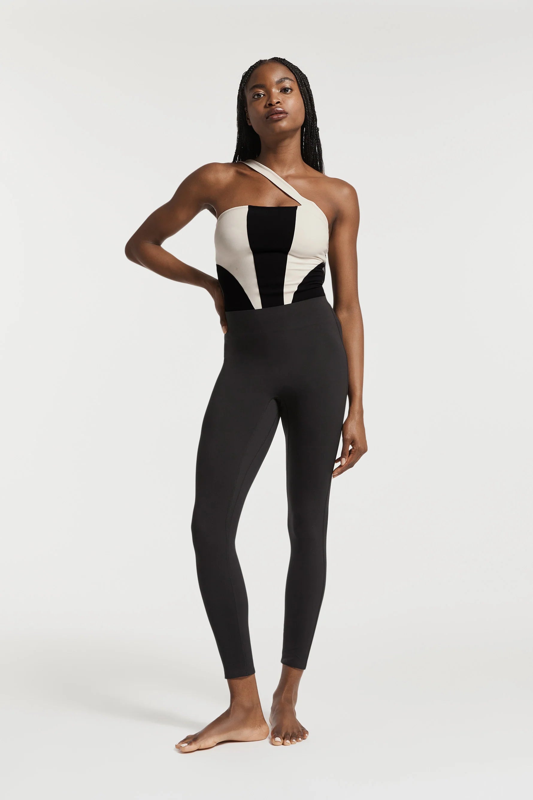 El body ha reinado supremo desde hace algunas temporadas: no solo suaviza todo desde las caderas hacia arriba, sino que también sirve como una prenda súper simple que puedes ponerte debajo de pantalones de vestir o jeans. Con pantalones de cintura caída y medias de temporada, recomendamos usar ambos a la vez para lograr este look.